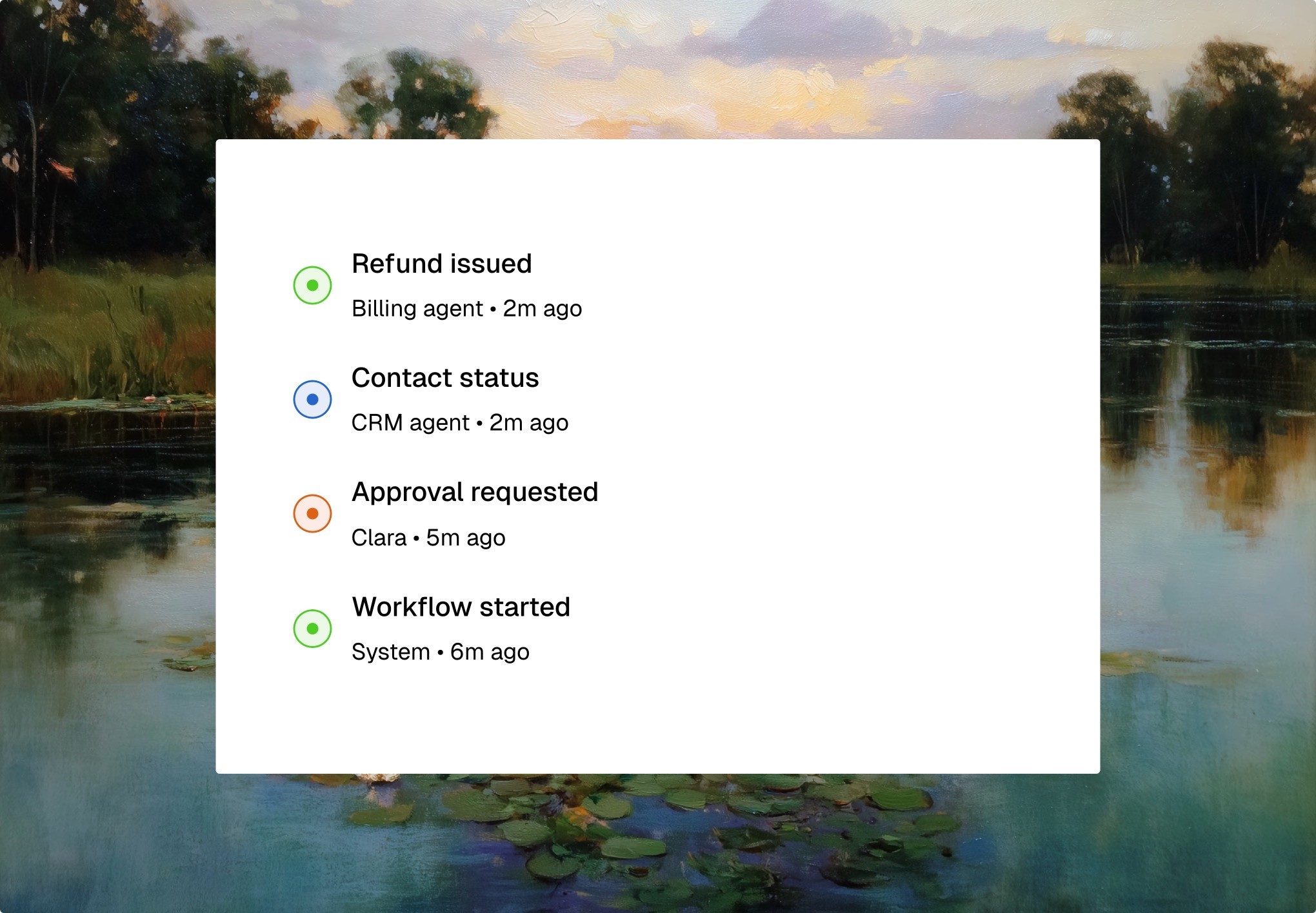 Every action logged, every decision traceable. See what happened, who triggered it, and when - in real time."