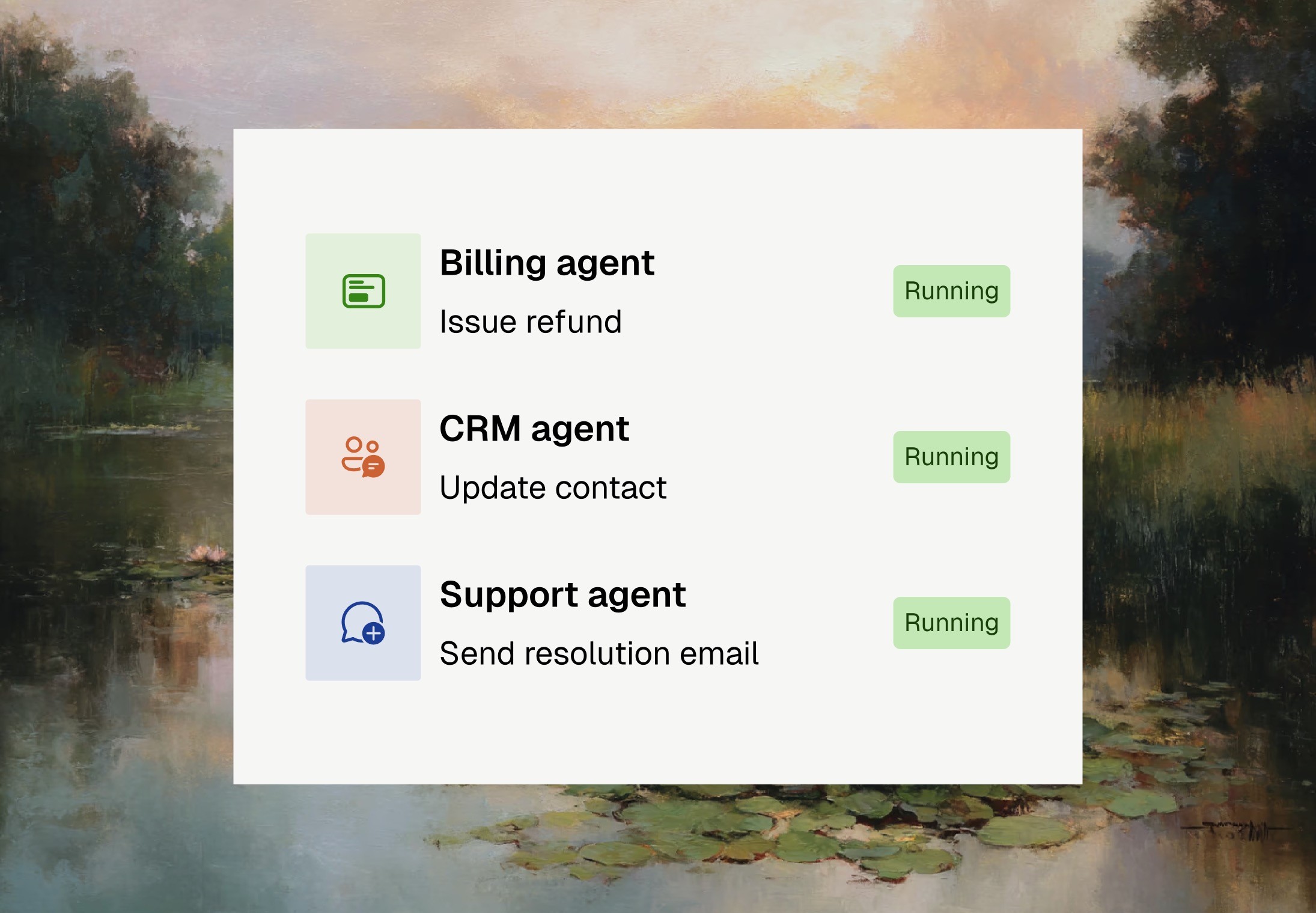 Assign specialized agents to different jobs: Billing → CRM updates → support actions.